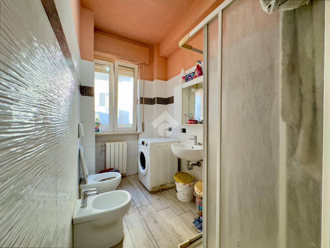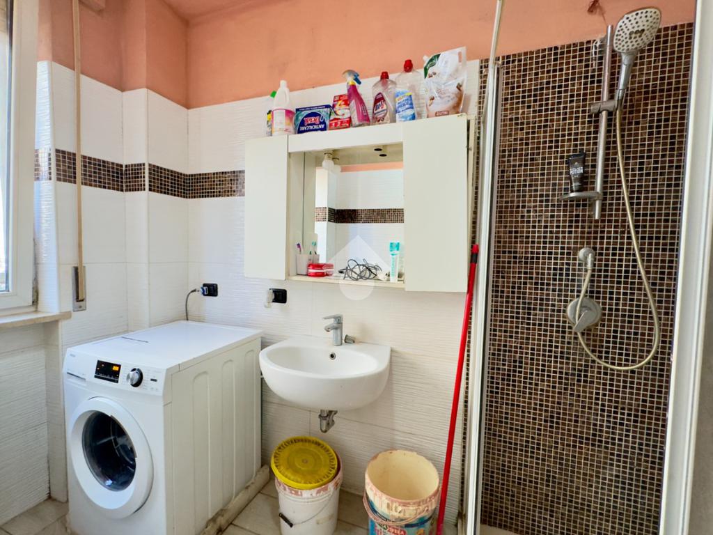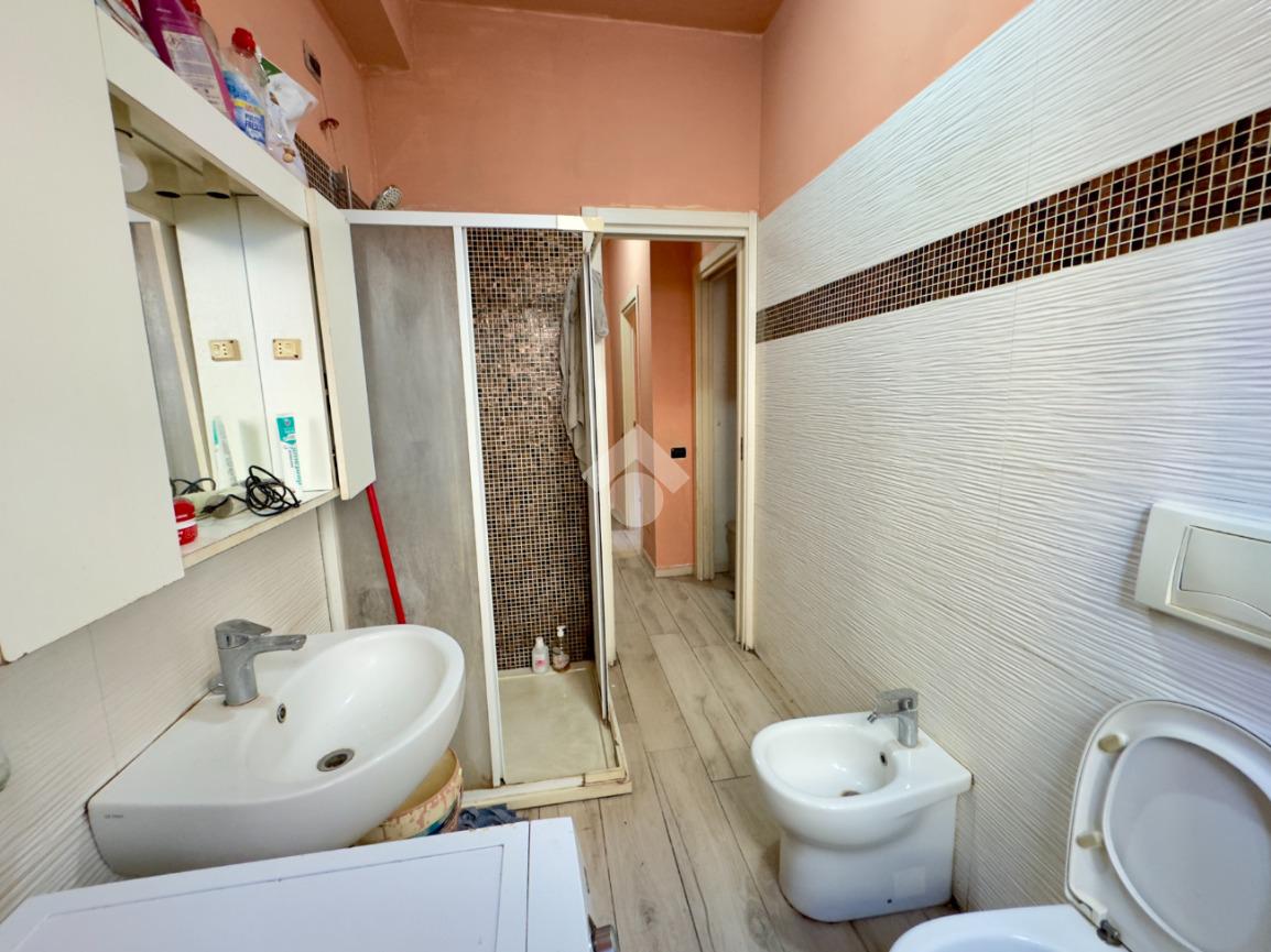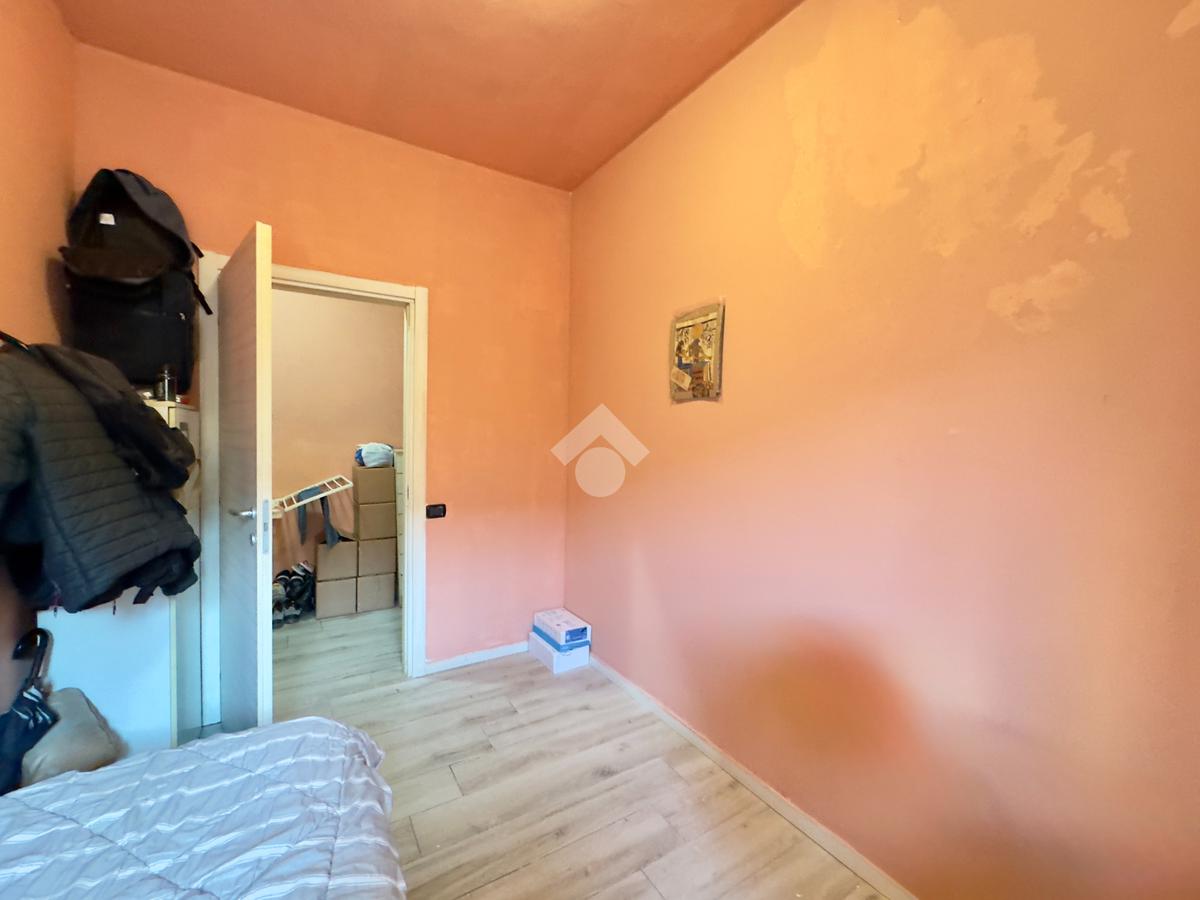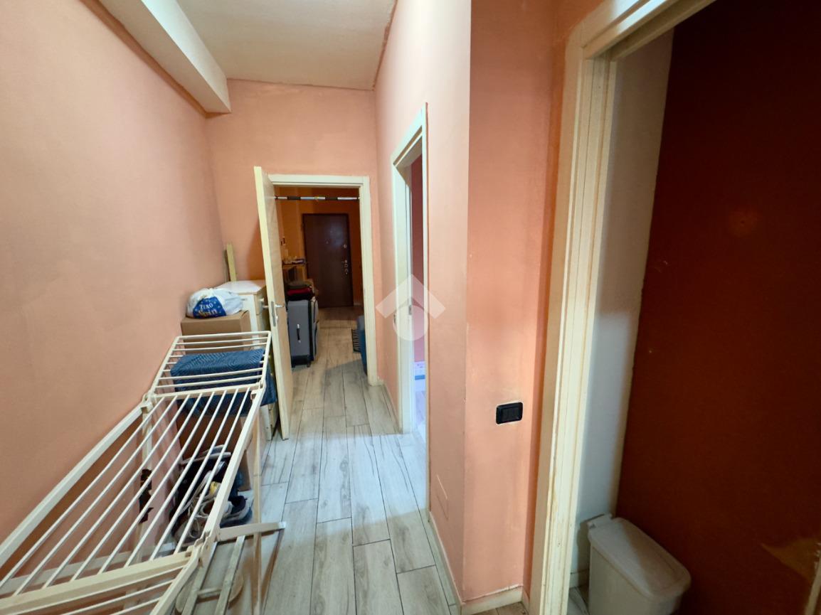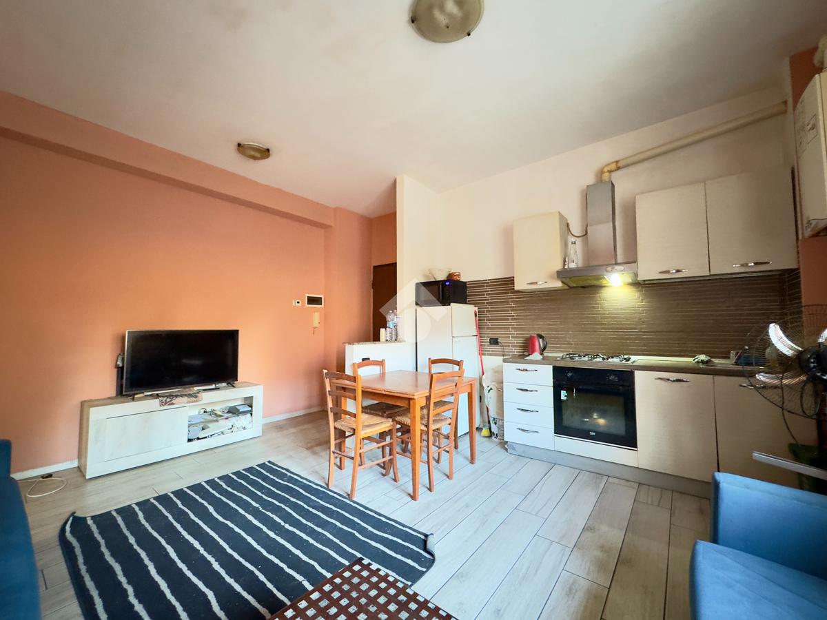 L’abitazione si apre su un ampio atrio d’ingresso che conduce al luminoso soggiorno con cucina a vista. Un pratico corridoio accompagna alla zona notte, composta da una camera matrimoniale, una camera singola e un bagno finestrato dotato di box doccia.