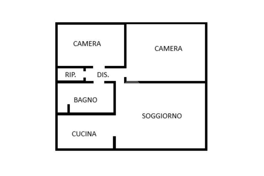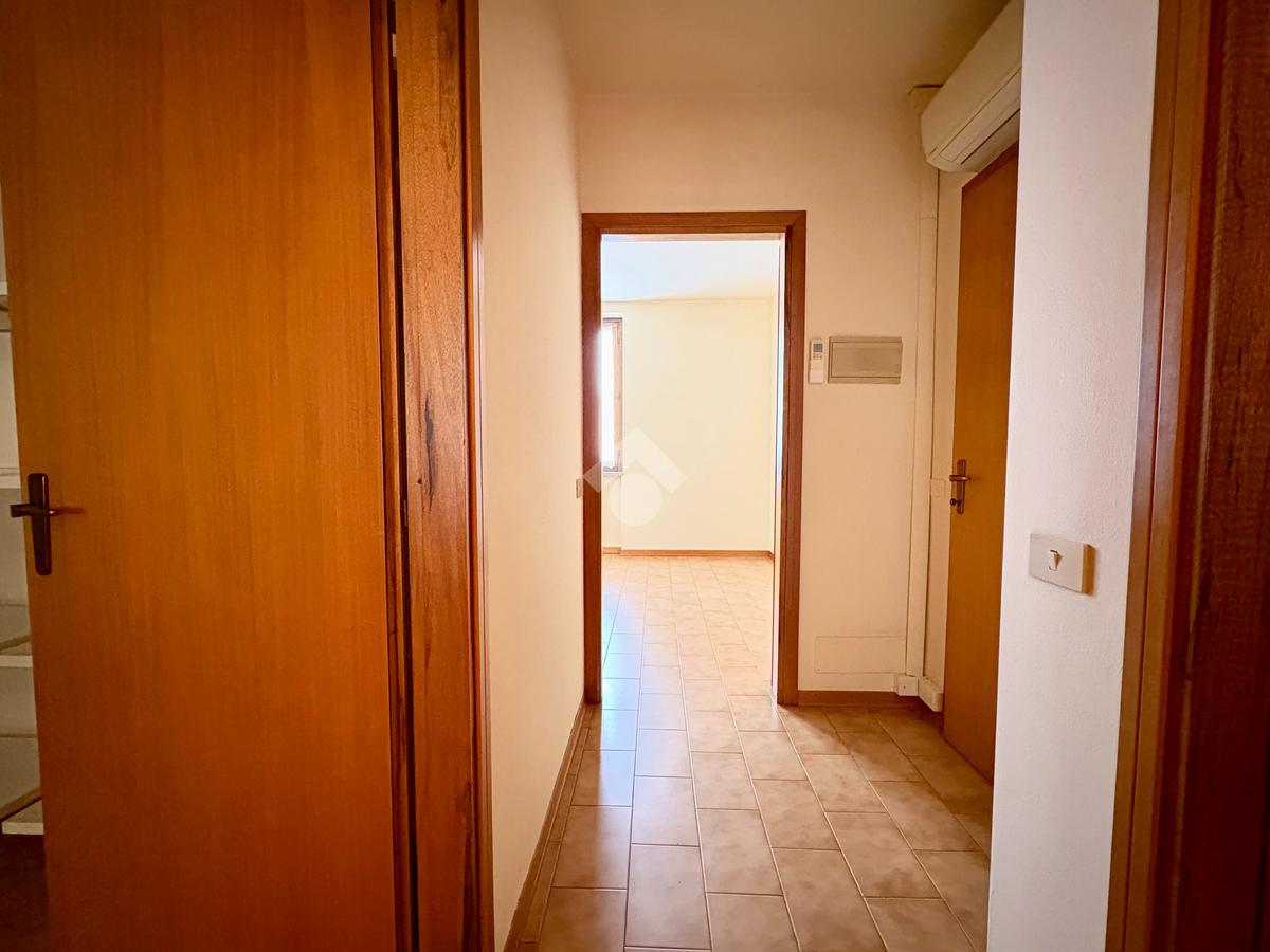 L’ingresso conduce a un ampio e luminoso soggiorno, perfettamente collegato alla cucina separata a vista, ambiente funzionale e conviviale. Un comodo corridoio disimpegna la zona notte, dove troviamo una camera matrimoniale, una camera singola, un bagno finestrato con box doccia e un pratico ripostiglio.
