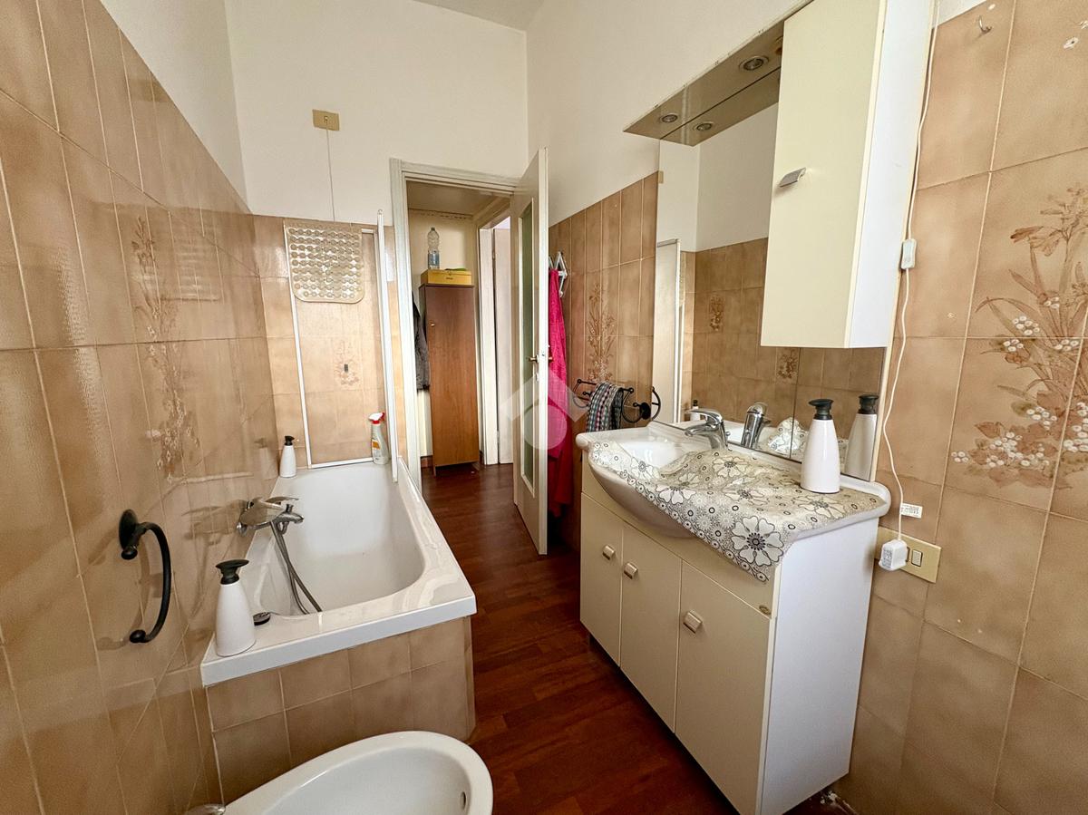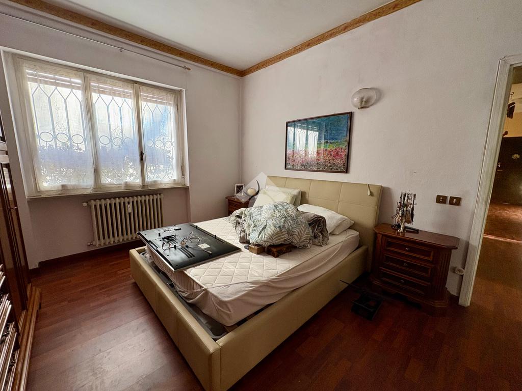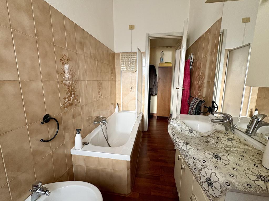 Tramite un comodo disimpegno si accede alla zona notte che comprende una spaziosa camera matrimoniale, una camera singola e un bagno finestrato con vasca.