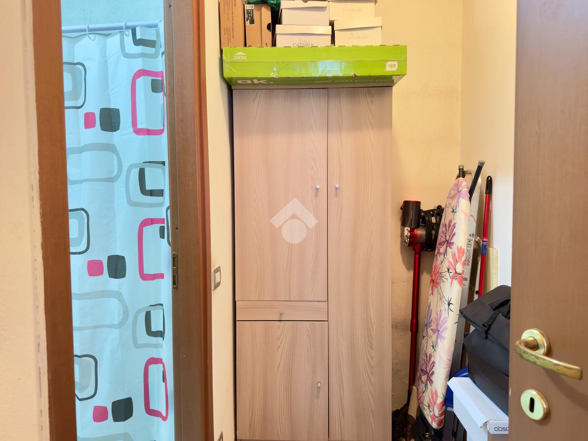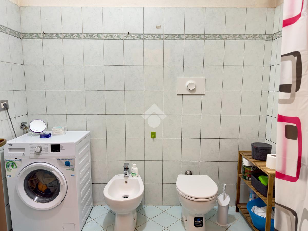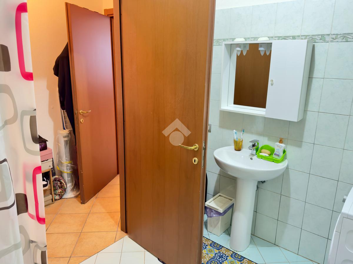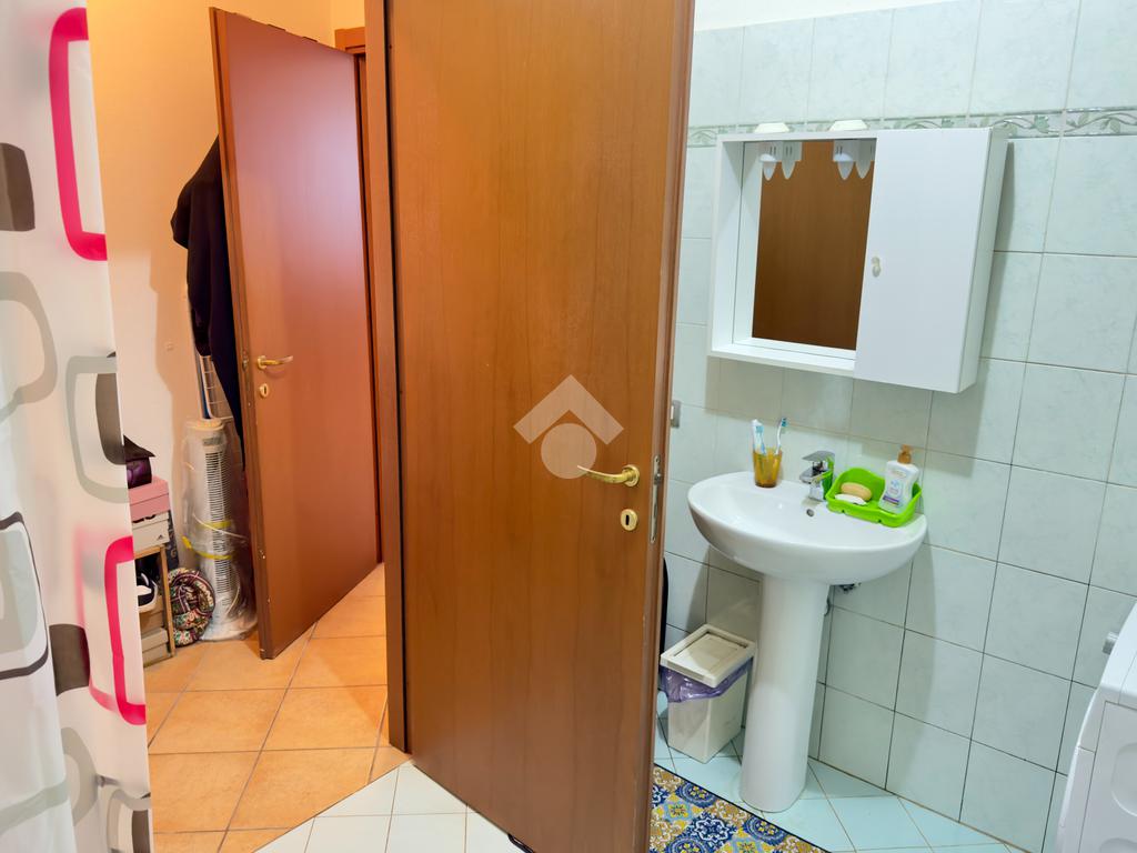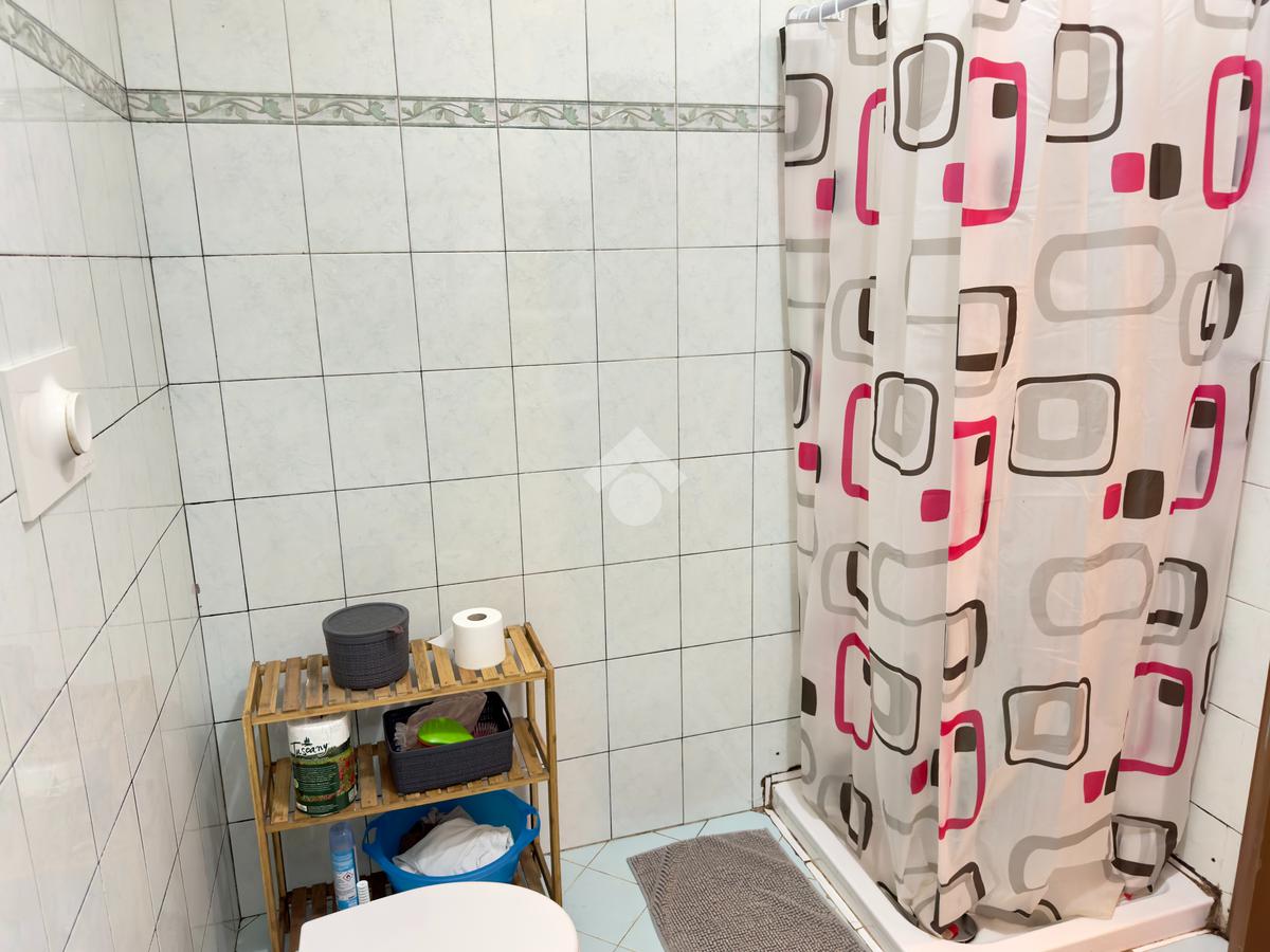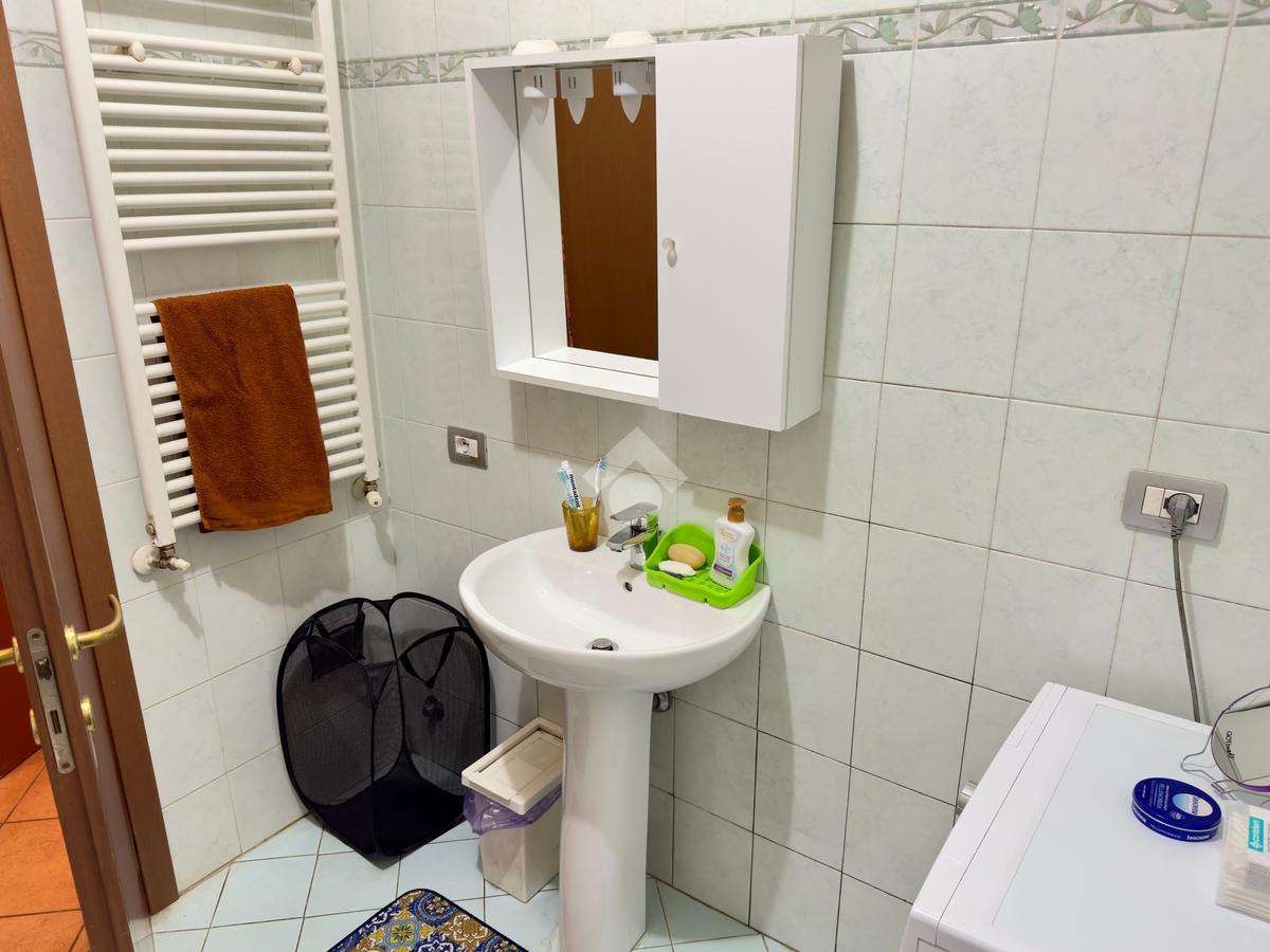 Attraverso un comodo disimpegno si accede al bagno, dotato di box doccia.